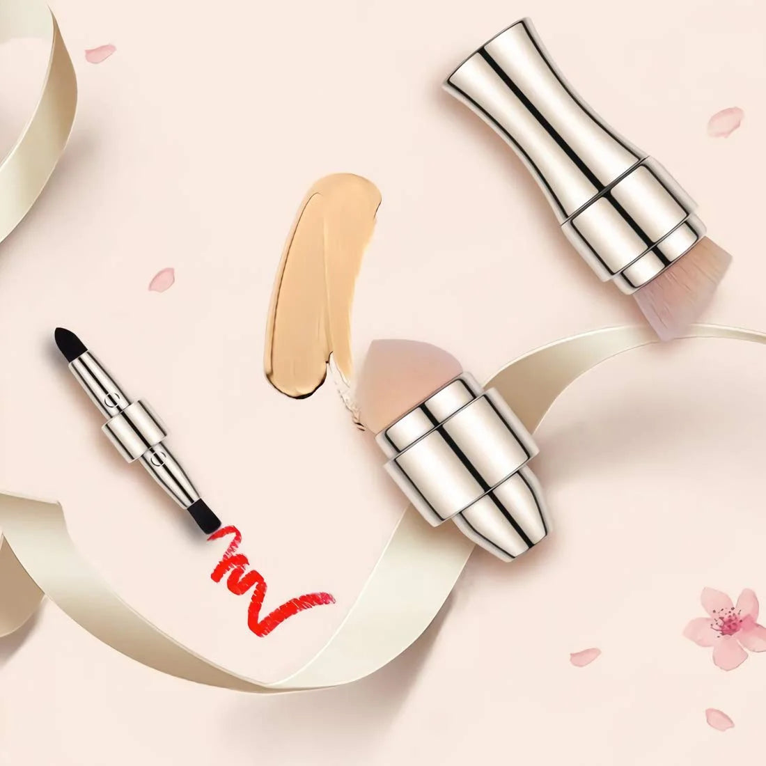Meet Droome™'s GlamEase, the revolutionary 4-in-1 makeup brush that replaces four tools in one sleek, portable design.